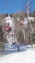 Because of the volume of beginners and little tykes using the Triple, it is more prone to slowing and stopping. During holiday periods, it's unusual to ride the Triple without a pause, but these are never prolonged and a small price to pay for such a pleasant ride. Like the Double, it has no liftlines to speak of, although it sometimes appears that way as crowds tend to gather at the lift entrance, which are the result of families and friends regrouping after a run. Lines seldom extend more than 5 or 6 skiers, even during holidays. Although we must note that if you happen upon Black during a holiday week, with lots of snow, and blue skies, you will find lines at the triple. 5-8 minutes at most.